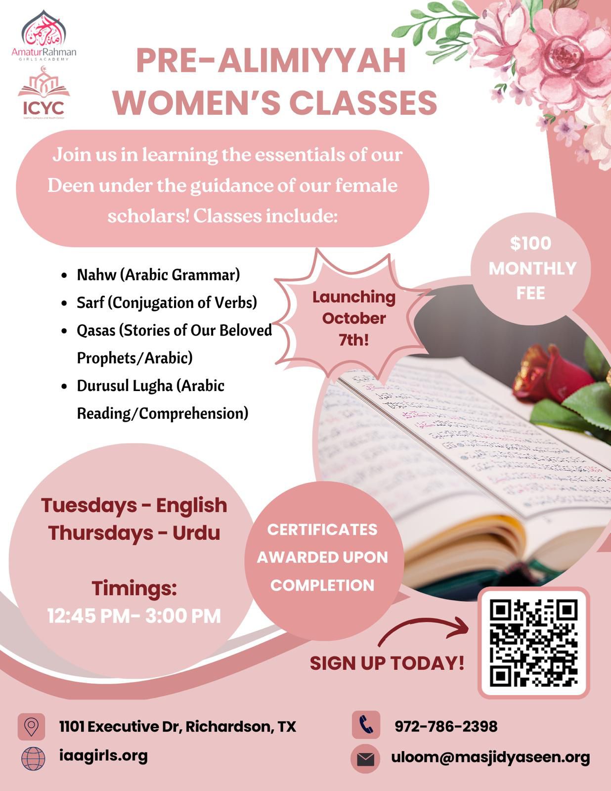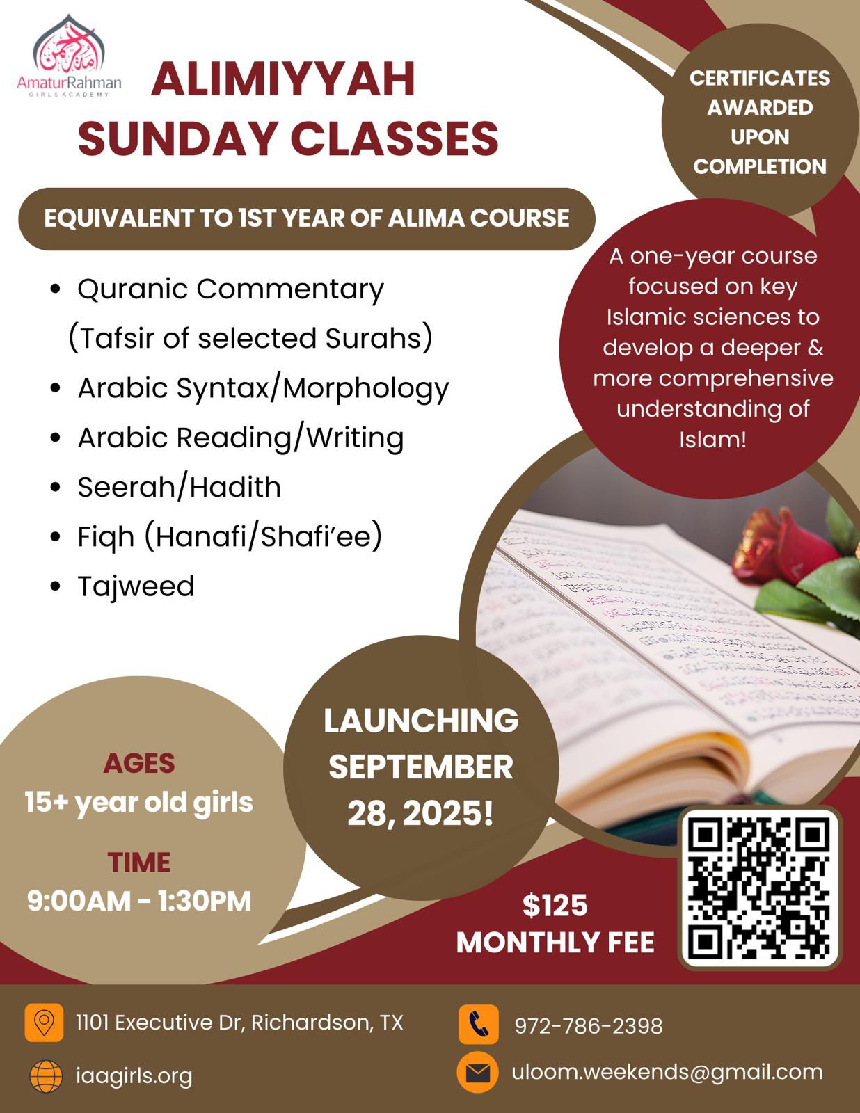 The Alimiyyah program is a post-secondary course designed to train students in the classical foundations of Islamic sciences. This six-year curriculum provides a thorough education to cultivate a deep and confident understanding of Deen.